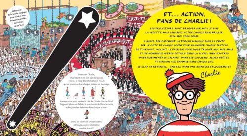 La saga « Où est Charlie ? » se poursuit avec un nouvel album 100% cinéma : le lecteur peut découvrir les décors grâce à une lampe magique et ainsi trouver Charlie, mais aussi Ouaf, le mage Blanchebarbe, et Pouah, qui se cachent sur chaque plateau.