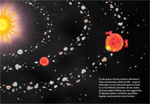 La Terre raconte elle-même son histoire et aborde, avec humour et simplicité, de grandes notions d’astronomie et de physique, accessibles pour les plus petits.