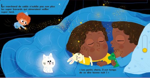 Pour Mehdi, c’est encore différent : il a peur du noir, alors le marchand de sable lui dévoile une jolie nuit pour l’apaiser et l’aider à rêver. Il promet au petit garçon que les étoiles vont veiller sur lui. A Colette qui refuse de rester calme sous la couette, il lui propose de se souvenir des meilleurs moments de sa journée.