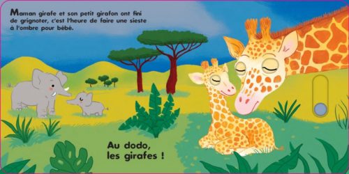 Ce livre animé accompagne le tout-petit dans son rituel du coucher avec les animaux de la savane. Un voyage apaisant vers le sommeil aux côtés de 5 animaux : le beau lionceau, les gros hippopotames, les flamants roses, maman girafe et son girafon et la famille zèbre.