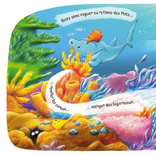 Un requin pacifiste dans l’océan Pacifique, quelle idée fantastique ! Sauf quand on est riquiqui, rouquin et sans cesse asticoté par le menu fretin. Ricky le requin en a marre : il voudrait être différent. Ses amis vont devoir lui prouver qu’il a tort. Une fable pour apprendre à s’aimer… tel que l’on est.
